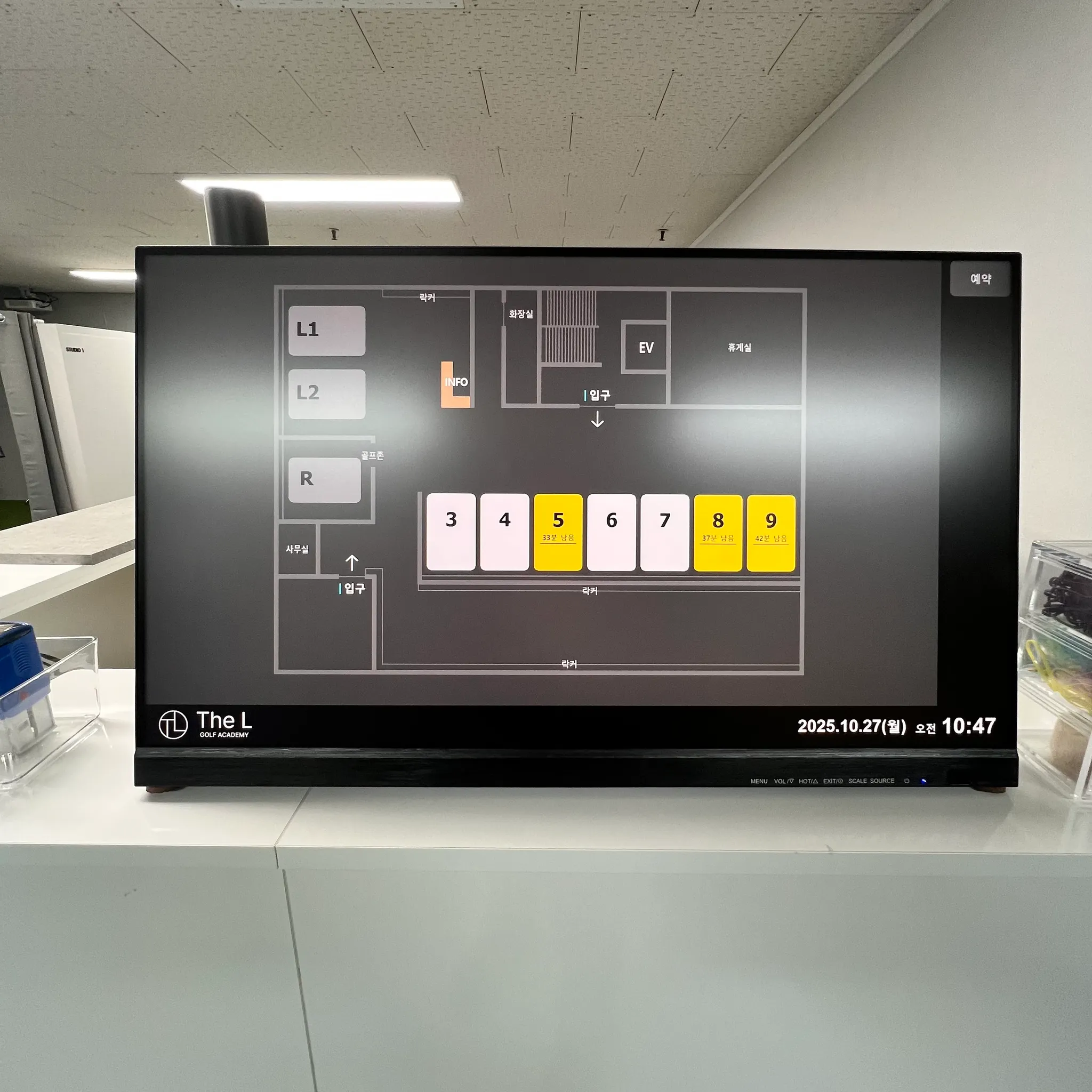 레슨북 시그니처 : 매장의 레이아웃을 그대로, 회원은 자신이 원하는 타석의 위치를 직관적으로 확인가능합니다. 타사의 키오스크에 레슨북 프로그램을 설치했습니다.