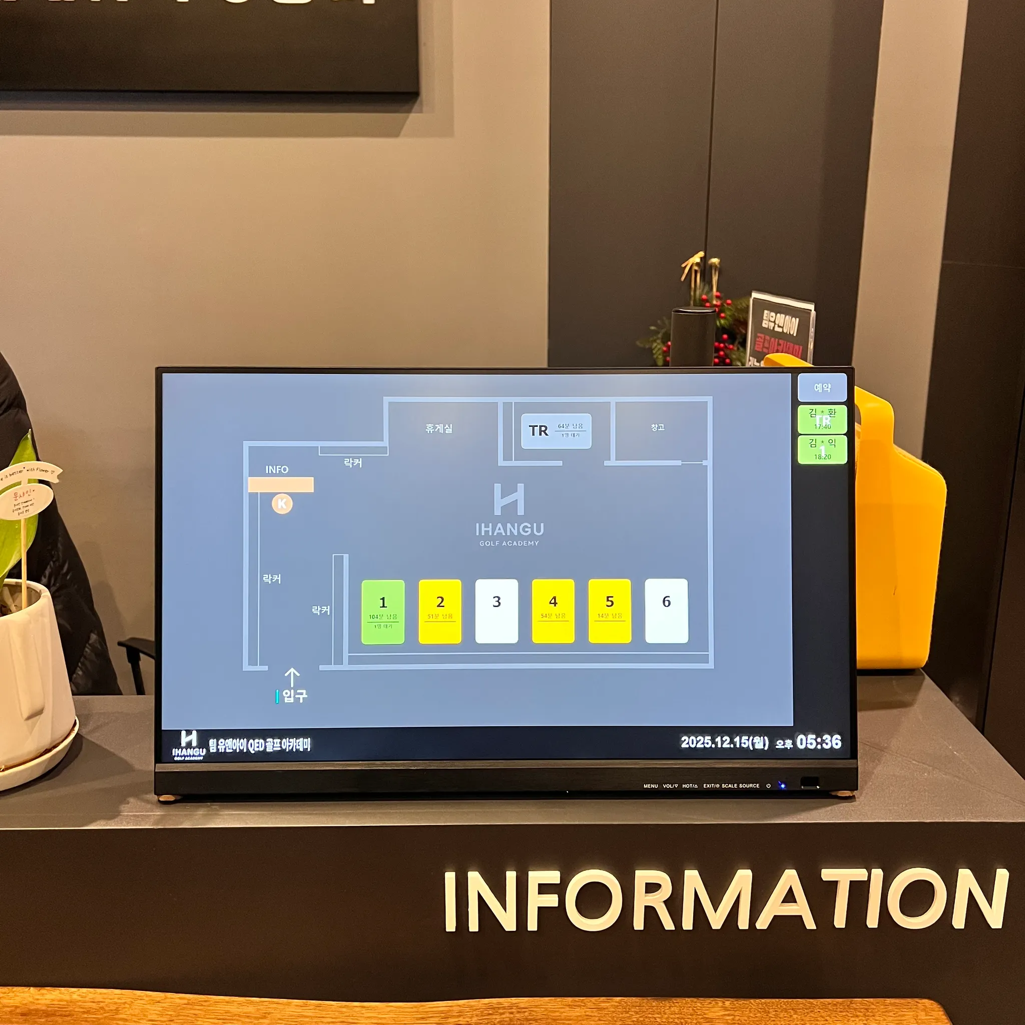 레슨북 시그니처 : 매장의 레이아웃을 그대로, 회원은 자신이 원하는 타석의 위치를 직관적으로 확인가능합니다. 타사의 키오스크에 레슨북 프로그램을 설치했습니다.