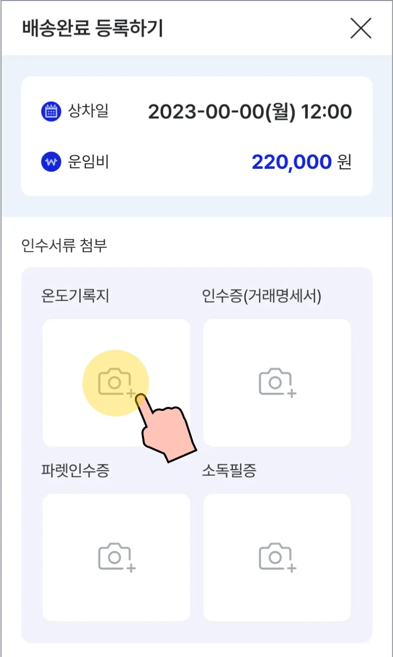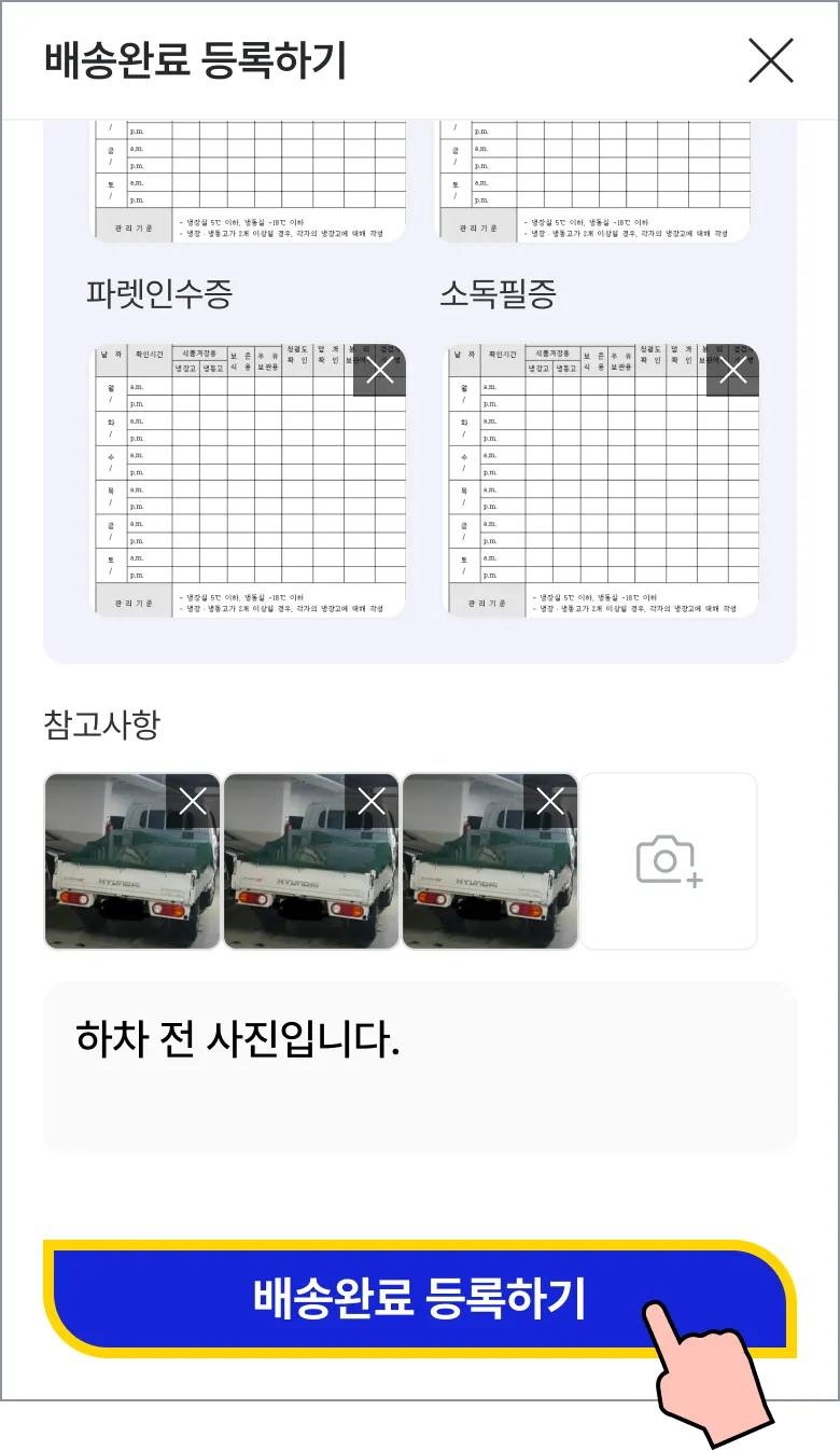 배송완료되면 서류 및 증빙사진을 등록합니다.