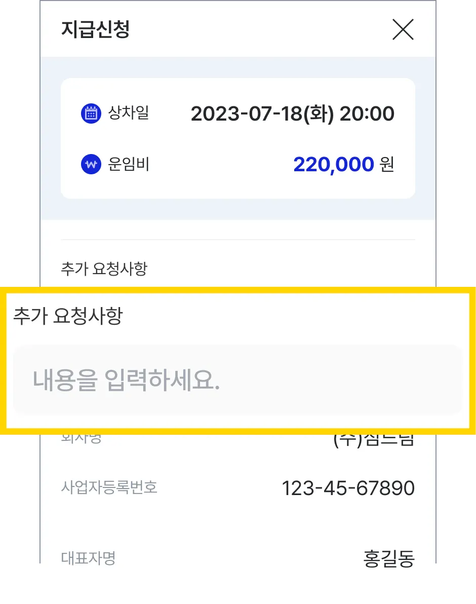 요청사항이 있는경우 요청사항에 내용을 입력합니다.