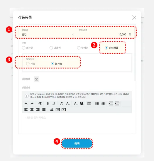 등록을 눌러, 일반판매상품 등록을 완료합니다.