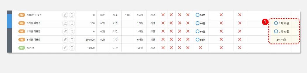 소정의 기간동안, 시설을 이용할 수 있는 횟수권(쿠폰)권입니다.